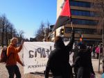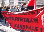 Kuten aiempina vuosina porukka järjestäytyi marssin häntäpäähän, levitti toisenkin banderollinsa (”Vastalauseista vastarintaan! Valta kansalle!”) ja nosti lippunsa (tällä kertaa oli vain punamusta).