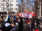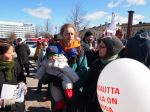 Meininki oli kova, vaikka ilma olikin kolea ja tuulinen. Kun tovereiden kone lähtee käyntiin, niin kyllähän sieltä lähtee ääntä! Jopa marssiin mattimyöhäisinä liittyneet ja blokkimme perään tulleet vanhat muuten vasemmistolaiset toverit liittyivät iskulauseisiin. Ja se oli mahtavaa!